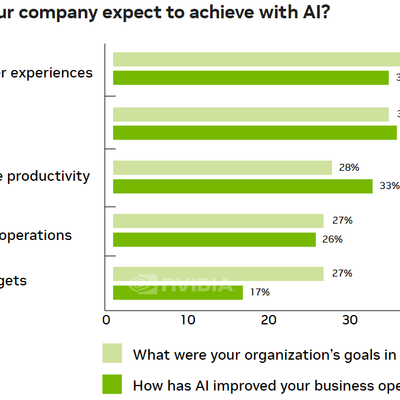 英伟达 Nvidia 2024 电信行业 AI 应用调研报告显示,在期望的 AI 用途方面,运营商更看中的是提升客户体验货和降低成本,而诸如收入提升这种更加面向市场前端的想法是靠后的。
