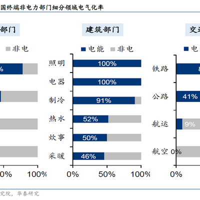 华泰证券基于国网能源研究的数据,绘制了典型垂直行业的电气化在 2050 年的比例。