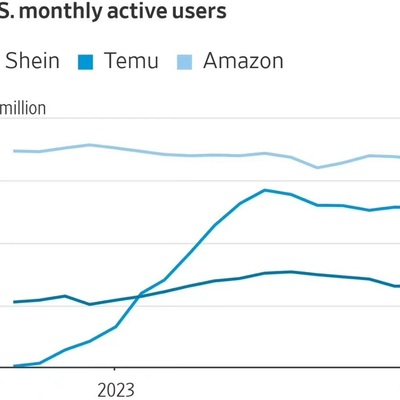 Temu (拼多多旗下)和 Shein 两家源自中国的电子商务公司正在 “精耕” 美国市场。Shein 的用户量爬坡早一些,Temu 则是 2023 前后在迅速崛起。
