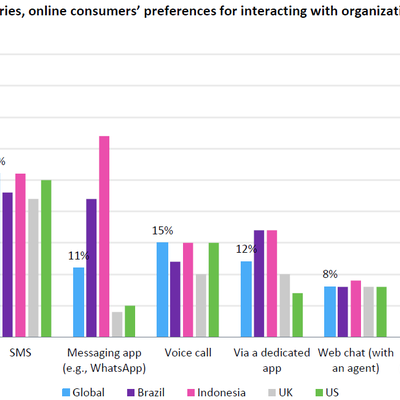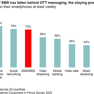 GSMA 的一项全球性消费者调研,短信(SMS)虽然使用率不及 OTT 消息(微信、WhatsApp、Line 等),但仍然具有极高的使用率。