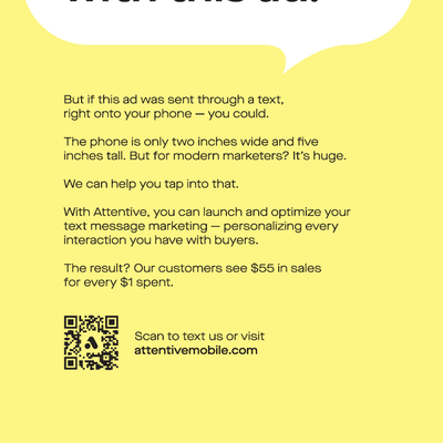 Attentive 强调其客户在短信推广上每花费 1 美元,可带来 55 美元的销售转换。