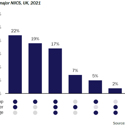 附图是欧盟 NIICS 2021 年在英国市场的调研,展示了主流的沟通类的用户渗透率情况。