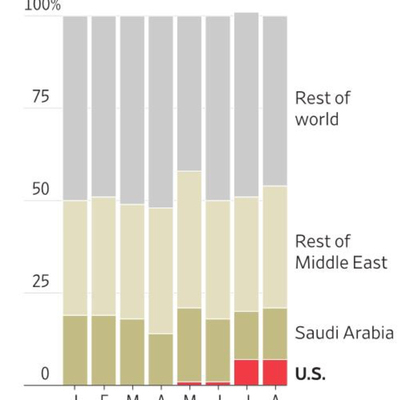 根据 Vortexa 的数据,2020 年 1 月时美国只占中国进口石油的 0.4% 份额,到 2020 年 9月猛增到 7%。