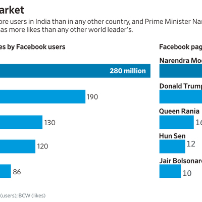 用户规模是大型互联网公司发展之基础。以 Facebook 为例,前五大市场为:印度、美国、印度尼西亚、巴西和墨西哥。