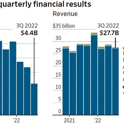 Facebook 母公司 Meta 因为收入增长放缓,而巨资投入开发元宇宙进展也不利,导致股票大幅下滑。