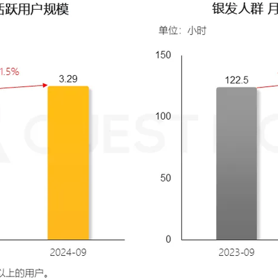 Quest Mobile 数据监测显示,截止到 2024 年 9 月,中国银发移动互联网月活人群达到了 3.29 亿户,月人均使用互联网时长达 129 小时。