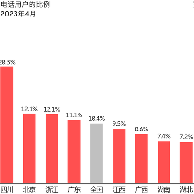 具体分省看,西藏、青海和四川三地固定电话占比最高,超过 20%。云南以 5% 比例占比最低。