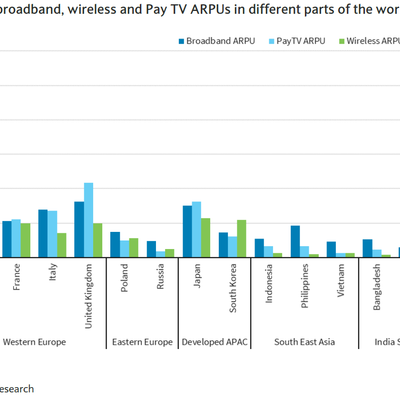 (1) 美国:媒体很强,内容很值钱,付费电视的 ARPU 大幅高于固定宽带,固定宽带又高于移动业务;