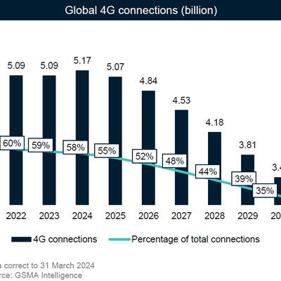GSMA 预计全球 4G 网络用户将在 2024 年触顶,达到 51.7 亿户,然后就开始走向下行。