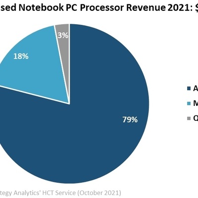 但这个趋势正在变化,根据 Strategy Analytics 咨询公司的研究,2021 年基于 ARM 架构的笔记本电脑处理器市场收入将达到 9.49 亿美元,对比 2020 年增长了三倍以上。