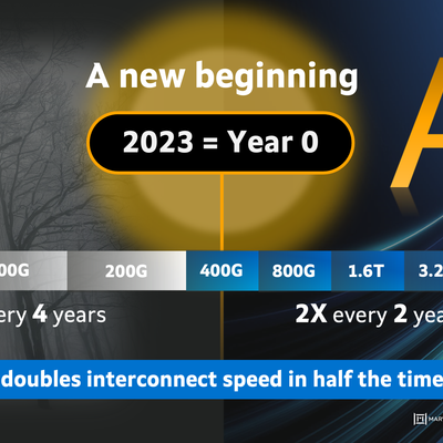 Marvell 认为,如果以 2023 年为分水岭,AI 算力集群的互联网带宽在之前年份大约每隔 4 年会翻倍;而之后年份会提升到每隔 2 年翻倍。