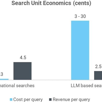 Altimeter 的研究认为,以每次搜索查询为例,传统查询每次的成本为 0.3 美分,而大模型搜索的查询成本为每次 3 - 30 美分。查询带来的商业变现角度,传统查询每次可带来 4.5 美分的收入(主要是广告),而大模型搜索带来的收入为每次 2.5~3.5 美分。