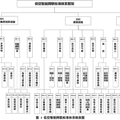 附图是低空产业联盟给出的《低空智能网联标准体系框架》,主要包括 “智能网联航电系统和设备”、“基础设施” 和 “数据与服务支撑” 等三个部分。