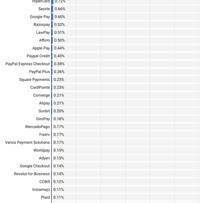 其他玩家的份额普遍就很小了,即便是 Amazon Pay 也只有 2.62% 的份额。总体来说,在线支付市场目前仍然是一种长尾化特征。