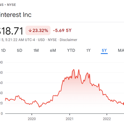 另一家北美热门的图片社交公司 Pinterest,也面临类似的问题。附图分别是其股价和活跃用户的曲线。