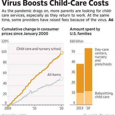 随着疫情的持续,很多父母在寻求保姆等支持服务,一些机构也在涨价(因为疫情原因)。