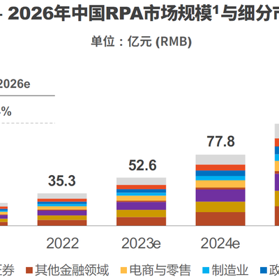 根据 RPA 中国的研究数据,2022 年中国 RAP 市场规模约为 35.3 亿元,预计到 2026 年有望突破 149.6 亿元,年复合增长 CAGR 为 43.4%。这个增速要比软件类大盘高很多。