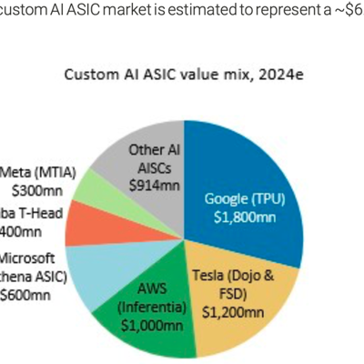 附图是 Morgan Stanley 的预测,围绕 AI GPU 自研(定制) 芯片市场在 20
