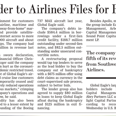 其收入大约五分之一来自美国西南航空。新冠疫情各种航班停飞,航空公司体量大相对还能扛,Wi-Fi 服务商扛不住了。