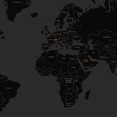 爱立信基于 Speedtest 全球数据做了一项可视化分析,高亮的点就是用户测速时所处网络为 5G。