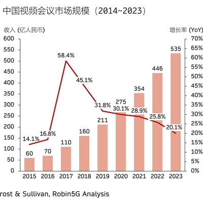 中国视频会议在 2018 年有 160 亿左右的市场空间,其中三成是传统视频会议系统(企业买一套私有化部署的设备),七成来自互联网和云端模式。