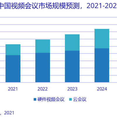 根据 IDC 咨询公司的研究,2021上半年,中国视频会议市场规模达到 28.3 亿元,同比上涨 8.6%。其中,硬件视频会议达到20.8 亿元,同比增长 8.8%;云会议达到 7.5 亿元,同比增长 8.1%。