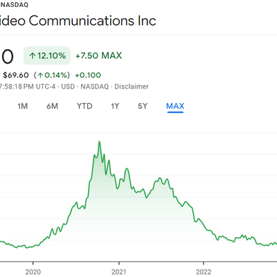 2019 年 ZOOM 上市后当日股价为 62 美元。2020 年 10 月 16 日,疫情隔离推动了大量用户涌入 ZOOM,其股价上升到了 559 美元。
