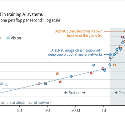 The Economist 基于 OpenAI 披露的数据,绘制了一张图,展示了不同的大模型及应用在算力需求上的变化。