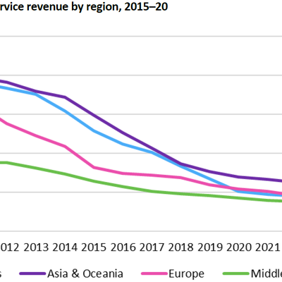 从 OMDIA 咨询公司的研究看,2020-2025 主要地区运营商的话音收入下滑趋势会大幅放缓。