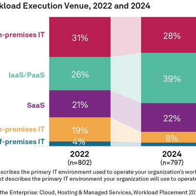 预计到 2024 年,“公有云 IaaS+PaaS” 会成为第一类(39%)。需要留意的是 “Modern on-premises IT” 还是有 28% 的比例,并没有降太多。