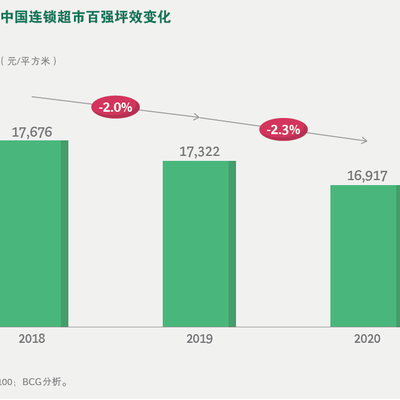 BCG 引自中国连锁经营协会的数据,中国百强零售商整体超市/卖场业态门店数在 2021 年已达到 28,502 个,较 2019 年的 26,207 个增长 9%。
