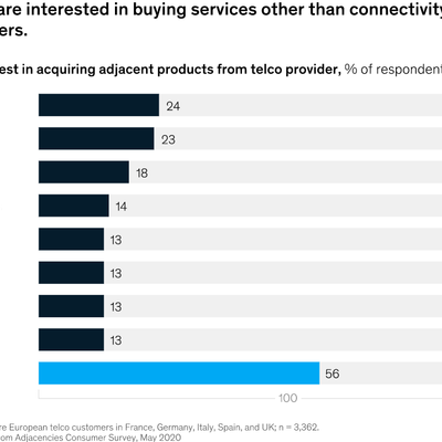 Mcksiney 针对欧洲消费者的调研显示,56% 客户表示,他们会从电信运营商那里购买连接以外的服务。