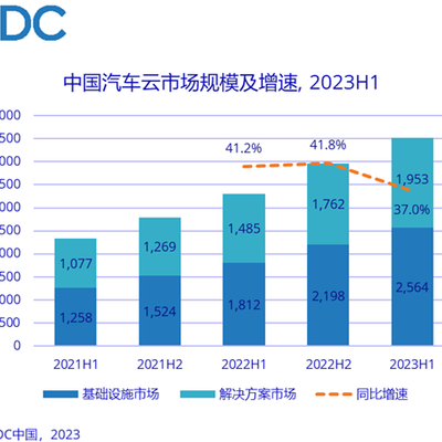IDC 咨询公司数据显示,2023H1 中国汽车云市场整体规模达到 45.2 亿元,同比增长 37%. 其中基础设施部分为 25.6 亿元,同比增长 41.5%;解决方案部分为 19.5 亿元,同比增长 31.5%。