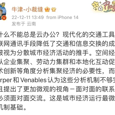 面对面当然是极为重要的,即便其他远程手段会扮演越来越重要的作用。“大城市化” 集中仍是主流态势,平均半径还会更近。