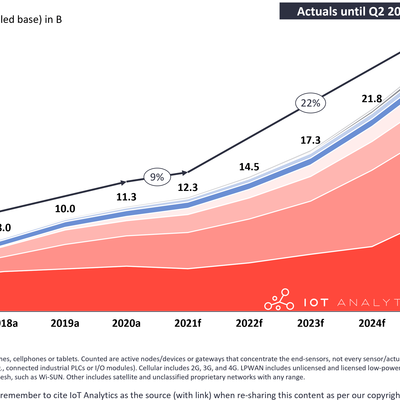 IoT Analytics 咨询公司 2021Q2 的预测,围绕全球广义物联网连接数的走势判断。