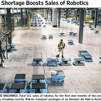 美国 2021 年前三个季度工业机器人的销售量达到了创纪录的 14.8 亿美元,共计 29,000 套机器人订单。