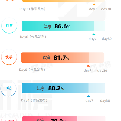无论哪个平台,70% 以上的用户点赞在作品发布的七天内产生。