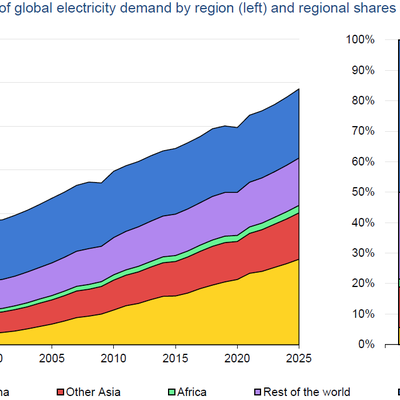 国际能源署 IEA 在 2023 年初的研究显示,到 2025 年亚洲将占据全球电力消耗的一半。全球三分之一的电力需求将来自中国。