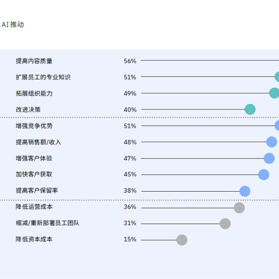 围绕生成式 AI 的价值,受访高管更关注通过增强体验来扩展能力和推动增长,而不是通过 AI 去代替人力等来降低成本。