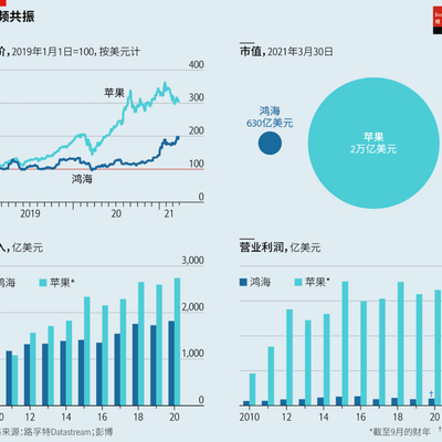 经济学人的一篇文中用 “同频共振” 来描述了苹果和鸿海的黄金组合关系。以过去一年为例,苹果的股价涨了三倍,鸿海的股价也翻了一番。