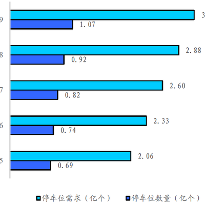 国泰君安的一项推算:按照中位数 1.2 的比率计算,我国停车位理论上需要 3.14 亿个停车位。而截至 2019 末,我国的停车位的数量只有 1.07 亿个。
