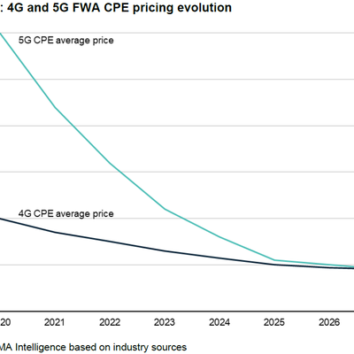 GSMA 的一项研究对比了,4G 和 5G CPE 终端的平均价格变化。