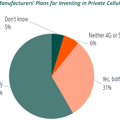 ABI Research 在 2023 年的调研显示,制造业企业如果对于蜂窝网络有兴趣或者建设实践。从技术选择上看,58% 的企业调研对象表示会选择纯 5G 的网络(5G Only)。也有 31% 的企业会同时选择 4G 和 5G。