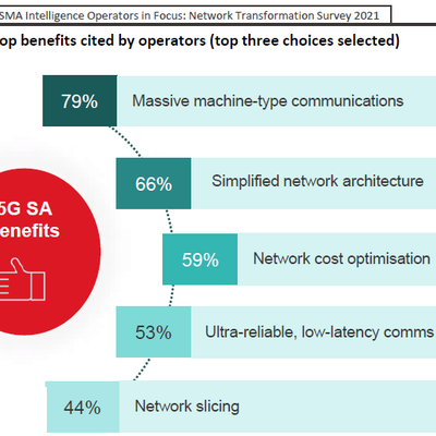 2019 年各地商用的 5G 基本都是 NSA 版本,后面逐步向 5G SA 演进。围绕 5G SA 的收益倾向,附图是 GSMA 针对全球运营商读者的调研。