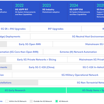 3GPP 更新了 5G-A 和 6G 的进度路线图。其中 R18 对应 5G-A (Advanced),R19 和 R20 用于 5G-A 的增强。
