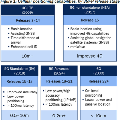 每一代移动通信标准都会对用户物理位置的定位精度有所改进。