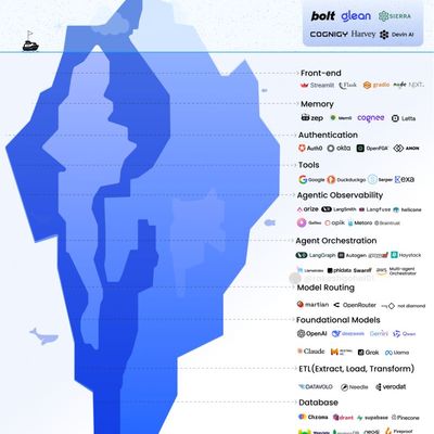 AI Agent 智能体是当前的热门话题。@rakeshgohe101 绘制了一张图展示冰山之下的不同层次。除了巨头之外,大量初创公司也在找细分空间的位置。