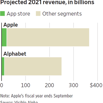 WSJ 预计 2021 财年 Apple 和 Google 的应用商店可产生共计 347 亿美元的收入。