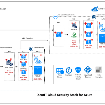 12-month subscription of Healthcare Cloud Security Stack for Microsoft Azure including Qualys Vulnerability Management, Policy Compliance, Trend Micro Deep Security, and unified dashboard by XentIT.