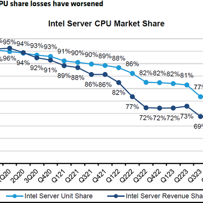 Intel x86 处理器一直是服务器市场 “接近唯一” 的供应商,尤其是从出货量百分比角度。